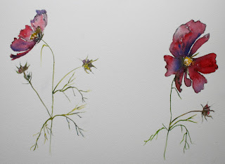 I then went back to the Cosmos, with its vibrant red. Again using the pen and then watercolour.